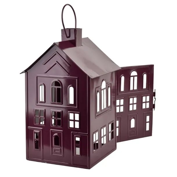 Domek lampion 20,3 x 20 x h33,8 cm. Stylowy lampion w formie domku wykonany z metalu, który łączy w sobie prostotę i elegancję. Dzięki swojej konstrukcji doskonale sprawdzi się jako nastrojowe źródło światła, idealny zarówno do wnętrz, jak i na taras czy balkon. Można w nim umieścić świecę LED lub tradycyjną woskową, co pozwala stworzyć przytulną atmosferę i wyjątkowy klimat. Solidne wykonanie gwarantuje trwałość, a dekoracyjna forma sprawia, że lampion staje się efektownym elementem aranżacji przestrzeni.