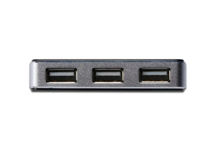Rozszerz swoje podłączenia! Hub USB 2.0 DIGITUS, 4 porty, 4x USB A/F, 1x USB Bmini/F, włącznie z kablem USB A/M do mini5P; Hub DIGITUS USB 2.0 o 4 portach umożliwia jednoczesne podłączenie do 4-rech urządzeń USB do PC lub Mac. Wetknij ulubione urządzenie USB i skorzystaj z bardzo szybkiego połączenia. Ma przejrzystą i elegancką konstrukcję z fortepianową czernią wykończenia od góry i spodu oraz aluminiowe krawędzie.