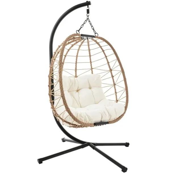 ⭐⭐Huśtawka ogrodowa Corta fotel wiszący jednoosobowy do ogrodu składany beż⭐⭐