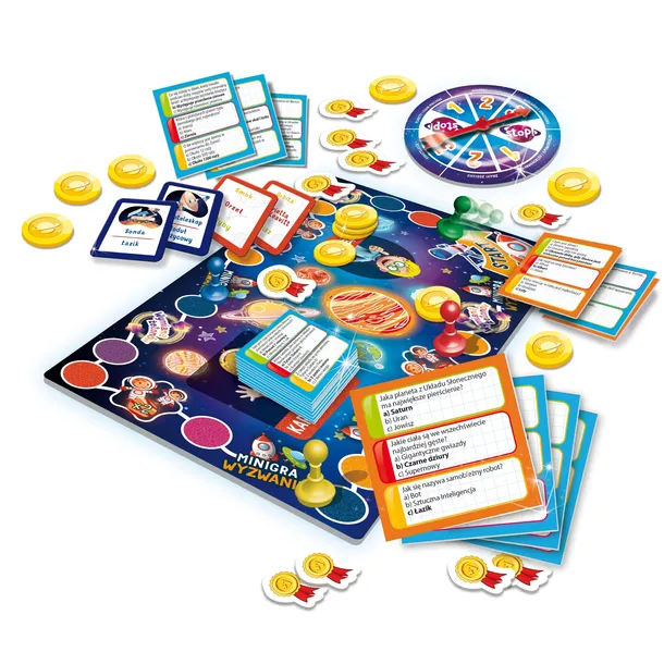 Gracze przesuwają się po planszy, odpowiadając na pytania i przechodząc przez wesołe minigry z zakresu astronomii.