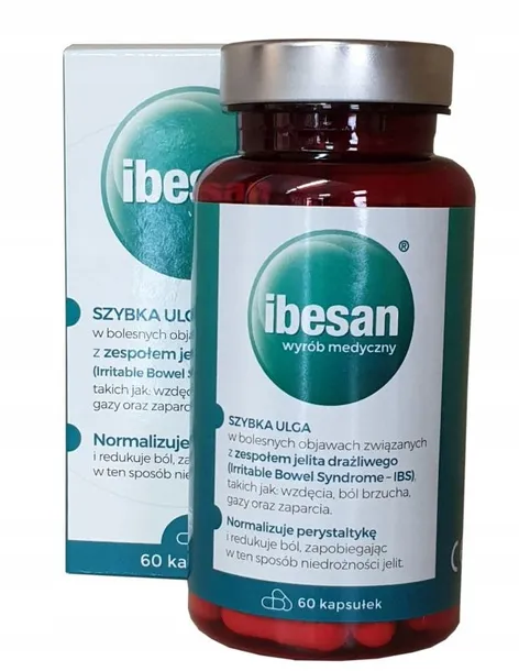 Wyrób medyczny Ibesan dzięki swym starannie dobranym składnikom przynosi szybką ulgę przy bolesnych objawach oraz przy gromadzeniu się gazów w układzie pokarmowym. Działa łagodząco na ból brzucha występujący w przebiegu biegunki u pacjentów z zespołem jelita drażliwego (IBS). Normalizuje perystaltykę i redukuje ból, przeciwdziałając tym samym niedrożności jelit. Jako składniki aktywne produkt zawiera naturalną glinkę mineralną (krzemian magnezowo-glinowy) oraz simetikon. Nie ulegają one wchłanianiu w jelitach. Naturalna glinka mineralna wchłania toksyny, bakterie oraz rotawirusy, nie pozwalając im na przyleganie do błony śluzowej jelit. Z kolei simetikon sprawia, że pęcherzyki gazów w żołądku i jelitach łatwiej ulegają łączeniu, co przekłada się na sprawniejszy pasaż gazów w jelitach.