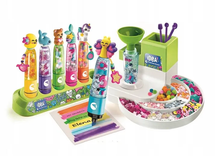 Oryginalne kreatywne laboratorium do zabawy przy tworzeniu mnóstwa kolorowych MARKERÓW!Nowy zestaw Idea, który pozwala dzieciom tworzyć i personalizować markery za pomocą wielu akcesoriów i dekoracji.Podręczny blat do ćwiczeń i bogaty zestaw instrumentów wspomagających zabawę daje niesamowity efekt!Dzieci będą mogły zrobić znacznie więcej niż tylko personalizację markera: zaangażują się w prawdziwy twórczy wysiłek!Opracowany i zaprojektowany we Włoszech.Wiek: +7