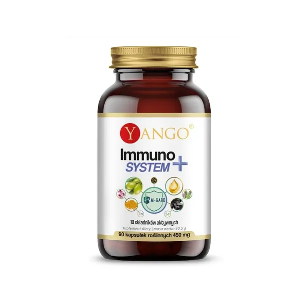 Beta-1,3/1,6-D-glukan z drożdży piekarskich M-GARD® Saccharomyces cerevisiae, ekstrakt z liści oliwki europejskiej (Olea europaea) standaryzowany na zawartość min. 40% oleuropeiny, ekstrakt z kurkumy (Curcuma longa) standaryzowany na zawartość min. 95% kurkuminoidów, ekstrakt z mumio (shilajit) standaryzowany na zawartość min. 40% kwasów fulwowych, ekstrakt z traganka (Astragalus membranaceus) 10:1, ekstrakt z jeżówki purpurowej (Echinacea purpurea) standaryzowany na min. 4% polifenoli, pikolinian cynku (cynk), L-selenometionina (selen), ekstrakt z czarnego pieprzu BioPerine® (Piper nigrum) standaryzowany na zawartość min. 95% piperyny. Skład kapsułki: Celuloza roślinna (wegetariańskie).