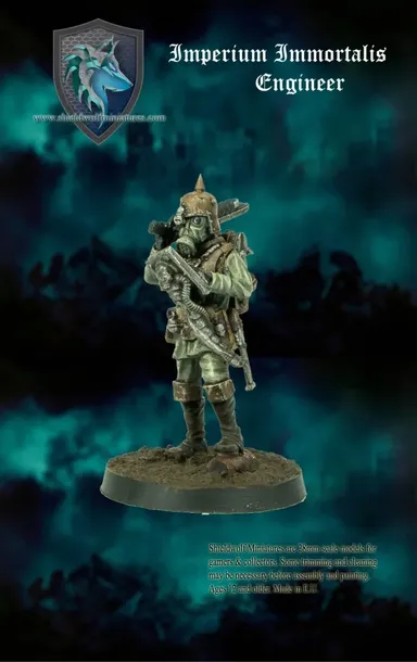 Ten produkt składa się z jednego modelu żywicy poliuretanowej Imperium Immortalis Engineer wysokiej jakości. Inżynier-weteran upewnia się, że pomoże na linii frontu, gdy jego praca nad utrzymaniem i naprawą maszyn wojennych Imperium zostanie spełniona.