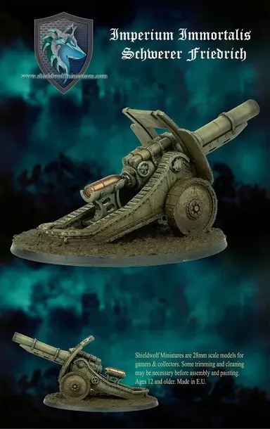Ten produkt składa się z jednego modelu żywicy poliuretanowej Imperium Immortalis Schwerer Friedrich. Te ogromne armaty są największym zagrożeniem, jakie Imperium może stawić czoła i wstrząsa samą ziemią za każdym razem, gdy wystrzeliwuje śmierć na linie wroga!