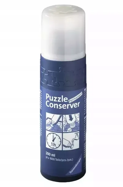 Gotowy środek konserwujący pozwala na łatwe połączenie ułożonych puzzli, ich przenoszenie oraz ochronę przed kurzem i brudem. Przed zastosowaniem produktu należy umieścić kartkę papieru pod układanką, aby zapobiec pobrudzeniu powierzchni roboczej, a następnie za pomocą gąbki rozprowadzić preparat równomiernie na całej powierzchni układanki (po stronie z obrazkiem), tak aby klej wniknął również w szczeliny pomiędzy elementami. Obrazek pozostawić do wyschnięcia na dwie godziny. Gąbkę aplikatora każdorazowo po użyciu należy dokładnie umyć wodą. Impregnat ma pojemność 200 ml i pozwala na pokrycie powierzchni około 1.5 m2.