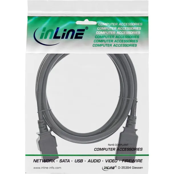 InLine 16641E. Długość kabla: 3 m, Złączka 1: C19 panel, Złączka 2: C20 panel. Prąd wejściowy: 16 A
