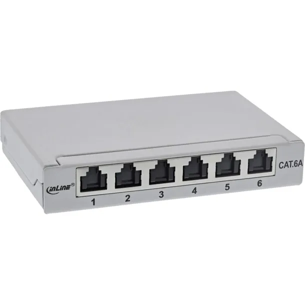 InLine 76816A. Złącze(a): RJ45, Obsługiwane typy kabli: Cat6a. Kolor produktu: Szary, Typ montażu: Montaż półkowy, Pojemność stelaża: 0.5U. Wysokość produktu: 23 mm. Rodzaj opakowania: Pudełko