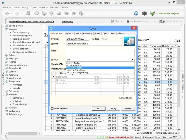 - zbiorcza aktualizacja danych (np. zmiana stawki VAT),