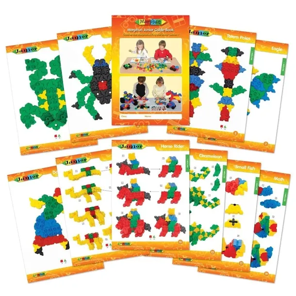 Instrukcje stanowią doskonałą podstawę do rozpoczęcia przygody z konstruowaniem własnych budowli z klocków Morphun Junior. W bindowanej książce odnajdziemy cenne wskazówki, jak krok po kroku dopasować do siebie poszczególne elementy, aby powstała z nich niecodzienna budowla. Z 60 stron tablic dziecko dowie się między innymi, jak skonstruować żabę, pająka a nawet dinozaura! Dodatkowym ułatwieniem jest podział poradnika na sekcje pod względem stopnia zaawansowania małego konstruktora. Wszystkie przykłady zaprezentowane są na dużych, przejrzystych ilustracjach w formacie A4. Wykonywanie kolejnych konstrukcji to sposób na odkrycie nowych metod łączenia części lub znalezienie inspiracji.