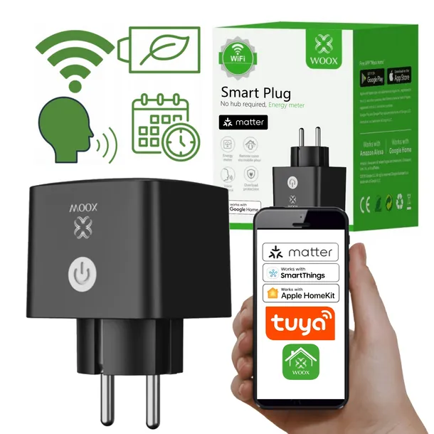 Gniazdko smart umożliwia pełne zdalne sterowanie za pomocą aplikacji Woox Home, dostępnej na smartfony i tablety. Dzięki tej funkcji masz pełną kontrolę nad urządzeniami podłączonymi do gniazdka, niezależnie od tego, gdzie się znajdujesz.