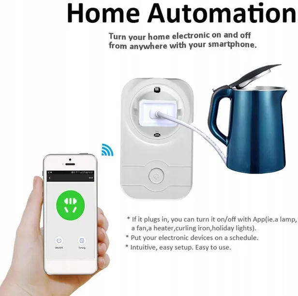 Brak trybu: włączaj i wyłączaj urządzenia o różnych porach, aby wyglądać jak ktoś w domu. Współpracuje z Amazon Alexa Kompatybilny z kontrolą głosową Nadaje się do: Kompatybilny z Andriod4.3 powyżej, Apple IOS8.0 powyżej.