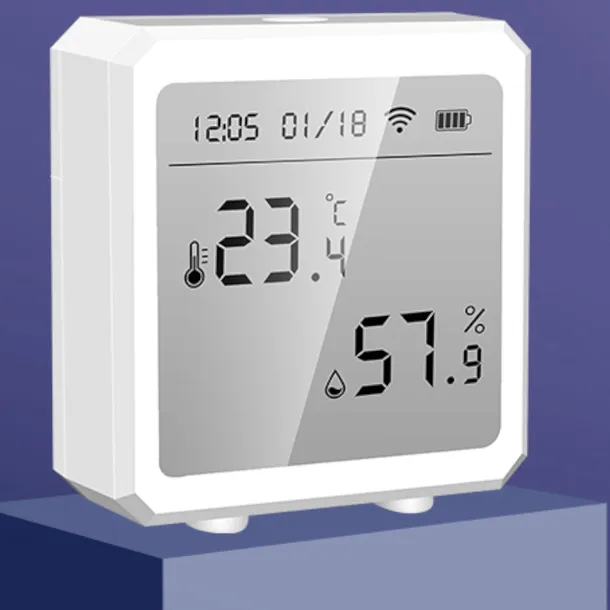 Czujnik temperatury i wilgotności Zigbee został zaprojektowany, aby dostarczać dokładne informacje o temperaturze i wilgotności powietrza w pomieszczeniach. Dzięki temu można go zintegrować z systemem automatyki domowej i sterować nim za pośrednictwem aplikacji Tuya.