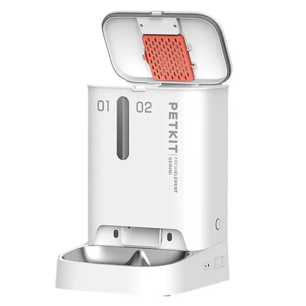 Ten wysokiej klasy podajnik karmy PetKit Fresh Element Gemini Smart Pet Feeder wyróżnia się niezawodnością i funkcjonalnością. Posiada innowacyjny podwójny zbiornik o pojemności 5L, który umożliwia przechowywanie dwóch rodzajów karmy oddzielonych od siebie, co pozwala na zróżnicowaną dietę dla jednego lub dwóch zwierząt.