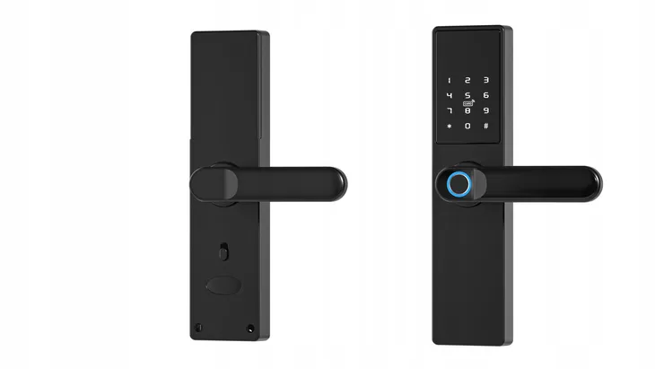 Inteligenty zamek do drzwi Tuya, Elektroniczny zamek do drzwi na odcisk palca, kod, Wi-Fi, RFID - czarna