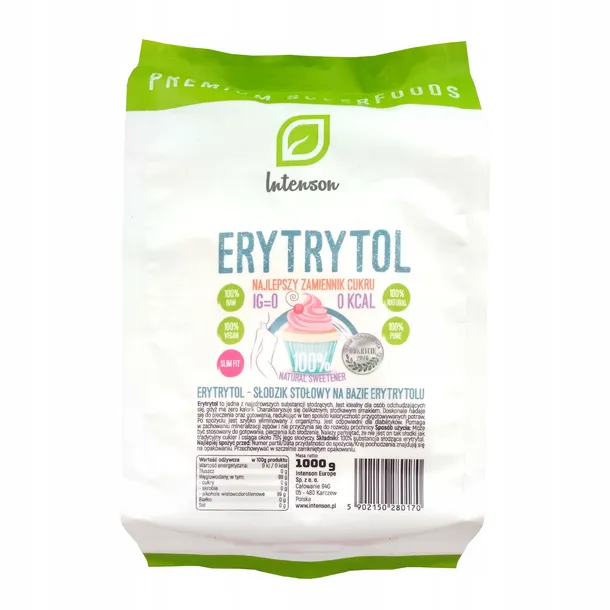 Podsumowując, Intenson Erytrytol to wysokiej jakości słodzik, stanowiący idealne rozwiązanie jako zamiennik cukru. Jest praktycznie bez kalorii i ma zerowy indeks glikemiczny. Doskonale nada się dla diabetyków i osób, będących na diecie redukcyjnej. Erytrytol nadaje się zarówno do napojów, jak i wszelkiego rodzaju potraw: owsianek, ciast, deserów.