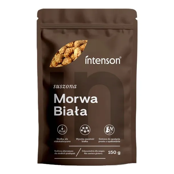 Intenson Morwa biała 150 g to wyjątkowe owoce, które zachwycają nie tylko smakiem, ale także wartościami odżywczymi. Suszone, słodkie owoce morwy białej są doskonałą alternatywą dla cukru oraz innych substancji słodzących, co czyni je idealnym dodatkiem do zdrowej diety.