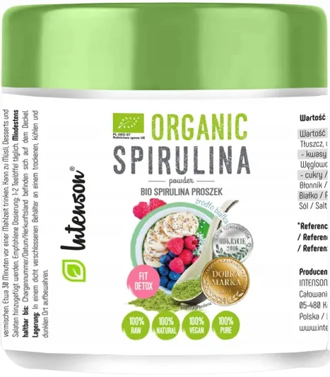 Podsumowując, Intenson Spirulina BIO to wysokiej jakości produkt, który dostarcza sproszkowanej spiruliny. Zaletą tego preparatu jest jego czysty i prosty skład, w którym jest miejsce wyłącznie dla spiruliny – bez żadnych dodatków i ulepszaczy. Ponadto produkt ten jest całkowicie odpowiedni dla wegan i wegetarian.