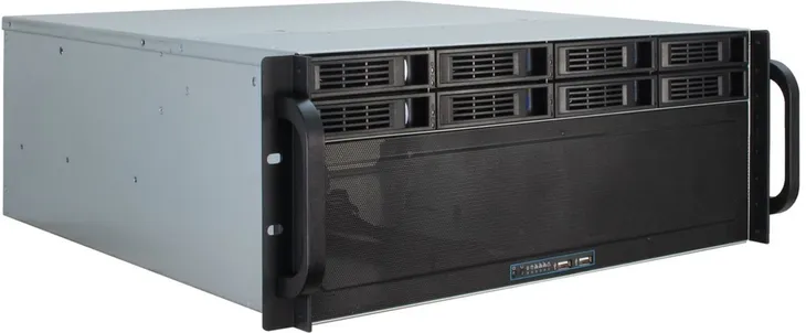 Inter-Tech 4U-4408. Układ: Rack, Model: Serwer, Kolor produktu: Czarny, Srebrny. Zainstalowane wentylatory tylne: 2x 80 mm. Obsługiwane rozmiary dysków twardych: 2.5,3.5". Szerokość produktu: 481 mm, Głębokość produktu: 438 mm, Wysokość produktu: 178 mm. Szerokość opakowania: 560 mm, Głębokość opakowania: 640 mm, Wysokość opakowania: 250 mm