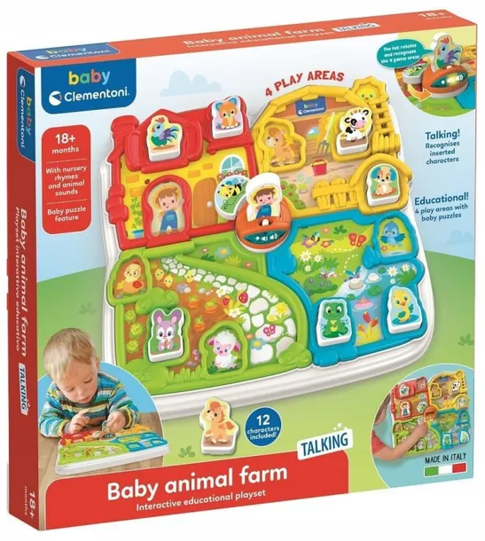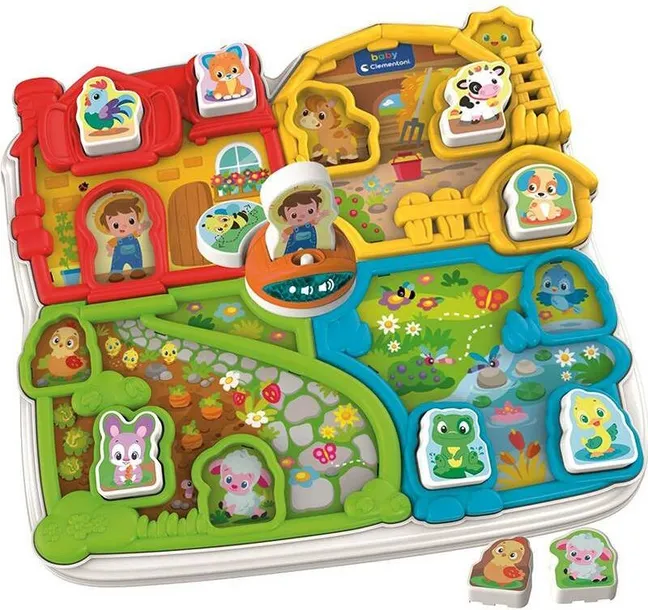Na magicznej farmie każde zwierzę przedstawia się, także w języku angielskim i śpiewa swoją rymowankę. Kompletny zestaw do zabawy, do rozbudzania ciekawości maluchów i oswajania ich z mnóstwem zwierząt.Specjalna pracowita pszczoła jest przewodnikiem, który odkrywa wszystkie tajemnice 4 obszarów farmyIdealna zabawka do rozwijania zdolności manualnych i wyobraźni podczas nauki pierwszych angielskich słówWszystkie 12 postaci przedstawia się dziecku, wypowiadając swoje imię, wykrzykując dźwięk i śpiewając prostą rymowankę