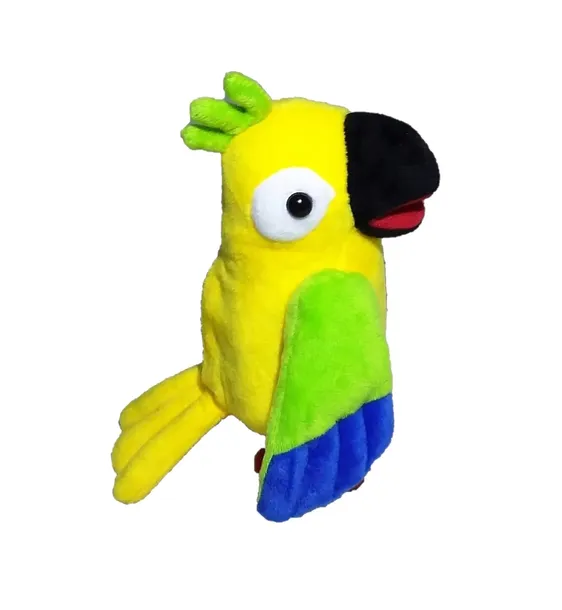 UWAGA! Powtarzanie kolejnej, pełnej frazy może mieć miejsce tylko wtedy,kiedy papuga skończy wypowiadać poprzednią i zatrzyma się. Papuga powtórzy krótką frazę.Przestanie nagrywać,kiedy zatrzymasz głos lub zmniejszysz głośność mówienia! Naciśnięcie przycisku ukrytego w lewym skrzydle zatrzymuje lub rozpoczyna zabawę z papugą od nowa!