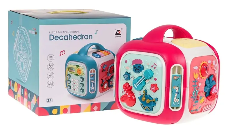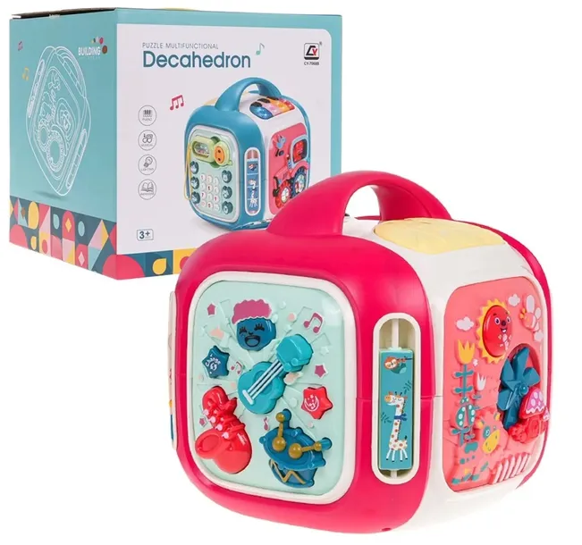 Interaktywny box z efektami dźwięku i światła dla dzieci od 3-go roku życia. Każda ścianka boxu zapewni dziecku wiele frajdy i interaktywnej zabawy. Różnorodne efekty dźwiękowe i świetlne oraz bogactwo kolorów, przyciągnie wzrok maluszka i zachęci do zabawy. Zabawka zasilana jest bateriami typu 3 x AA 1,5 V (brak w zestawie).