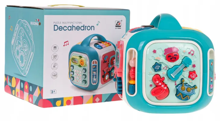 Interaktywny box z efektami dźwięku i światła dla dzieci od 3-go roku życia. Każda ścianka boxu zapewni dziecku wiele frajdy i interaktywnej zabawy. Różnorodne efekty dźwiękowe i świetlne oraz bogactwo kolorów, przyciągnie wzrok maluszka i zachęci do zabawy. Zabawka zasilana jest bateriami typu 3 x AA 1,5 V (brak w zestawie).
