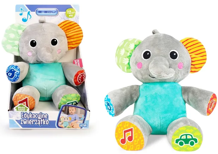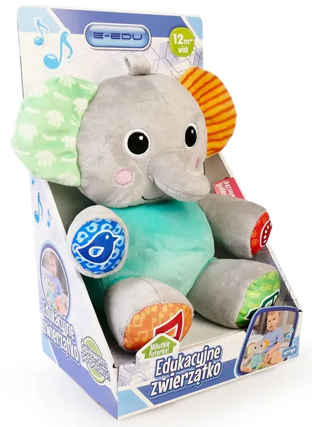 Interaktywny Pluszowy Słonik E-EDU Maskotka Edukacyjna Mówi Po Polsku 12m+