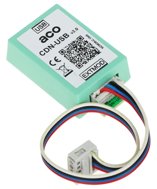 Kompatybilność: Wszystkie urządzenia ACO ; Złącza: 1 szt. USB (do PC) 1 szt. gniazdo „EXTMOD” (do centrali) ; Obsługiwane systemy operacyjne: Windows ;