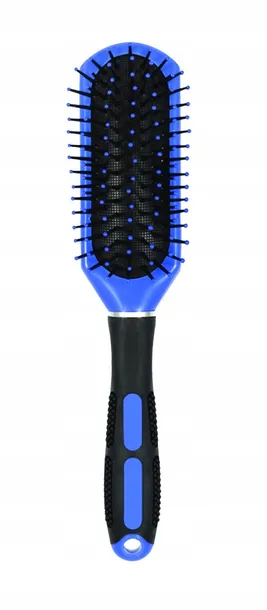 Pneumatyczna, wąska szczotka do rozczesywania włosów marki Inter-vion z plastikowymi szpilkami, które masują skórę głowy podczas rozczesywania i doskonale rozdzielają pasma włosów. Profilowana, gumowana rączka ułatwia manewrowanie szczotką podczas stylizacji włosów.