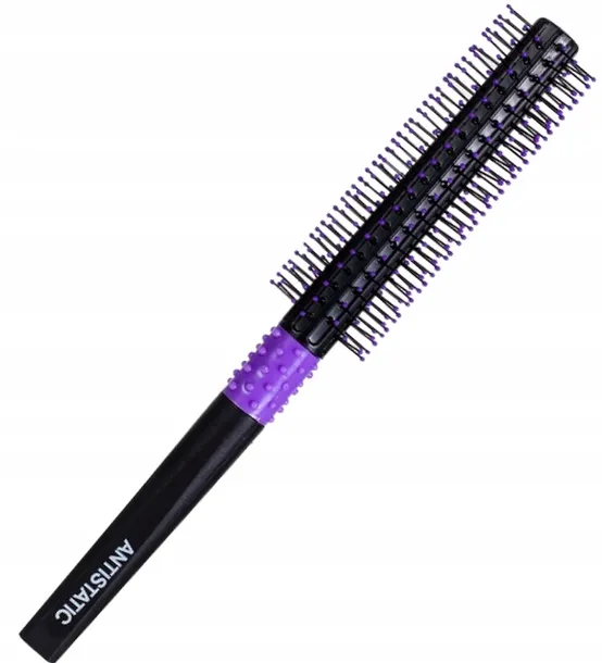 Antystatyczna szczotka do modelowania włosów - lokówka. Sprawia że stylizacja fryzur jest niezwykle wygodna podczas suszenia i dodawania włosom objętości. Rączka o zwężanym kształcie ułatwia manewrowanie szczotką podczas modelowania włosów.