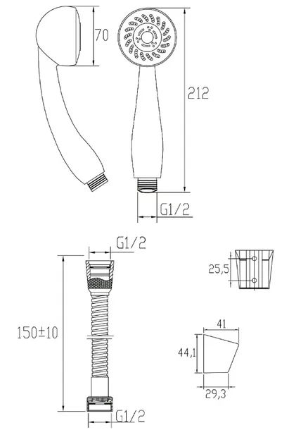 - Ilość: 1 KOMPLET (Natrysk ręczny 3 - funkcyjny, uchwyt punktowy, wąż natryskowy 150 cm)