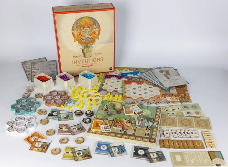 Gra Inventions opisuje najbardziej doniosłe wynalazki ludzkości i oddaje moc tych technologicznych osiągnięć w ręce graczy, którzy na przestrzeni wieków rozwijają swoje społeczeństwa. To rozbudowana gra euro, która obraca się wokół długoterminowej strategii.