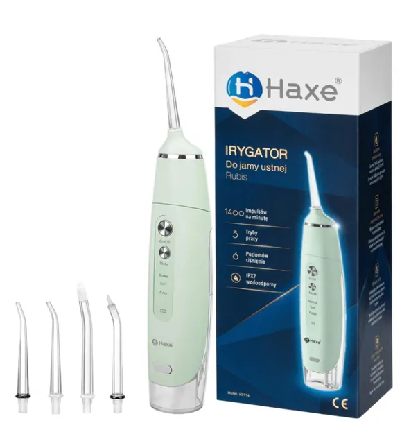 Każdy Irygator do zębów Haxe Rubis zapakowany jest w solidne, eleganckie pudełko, które chroni urządzenie w transporcie i świetnie wygląda jako prezent.
