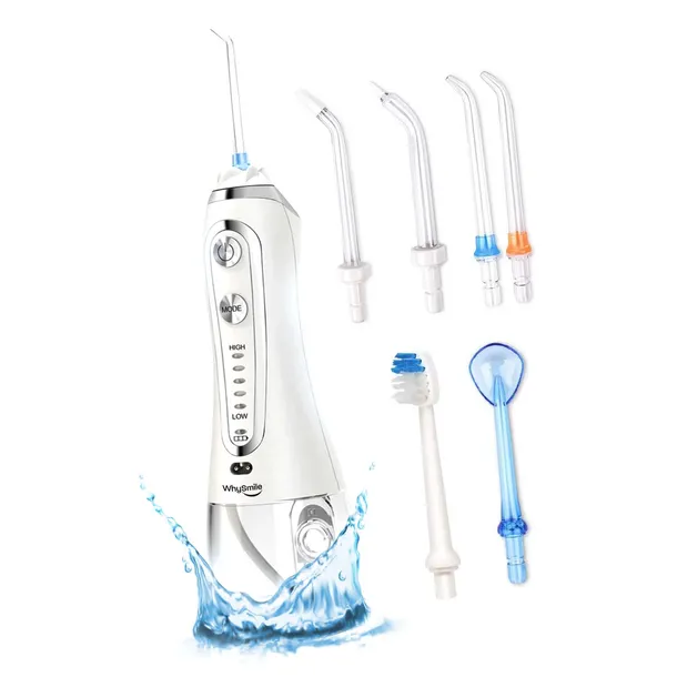 ✅DUŻY Irygator do Zębów Dentystyczny BEZPRZEWODOWY - 5 Trybów, 9 Dysz, MOC + Etui, Skuteczna Higiena Jamy Ustnej, Nowoczesne Rozwiązanie INNOWACYJNY BEZPRZEWODOWY IRYGATOR DO ZĘBÓW DENTYSTYCZNY Dbanie o higienę jamy ustnej jeszcze nigdy nie było takie proste i skuteczne. Wnieś na zupełnie nowy poziom swoją pielęgnację zębów i dziąseł, dzięki zaawansowanej technologii pulsacyjnej, czyszczącej nawet trudno dostępne przestrzenie międzyzębowe. ZALETY PRODUKTU: 5 TRYBÓW PRACY - dobierz działanie idealnie do swoich potrzeb. INTELIGENTNY TIMER - Automatycznie wyłącza urządzenie po 2 minutach użytkowania. DŁUGA ŻYWOTNOŚĆ - Aż do 12 dni użytkowania na jednym ładowaniu - przy zalecanym czasie 2 minut 2x dziennie. WODOODPORNOŚĆ KLASY IPX7 - dzięki sopecjalnej zawleczce na port ładowania możesz nawet całkowicie zanurzyć irygator w wodzie, bez obaw o jego uszkodzenie. ERGONOMICZNY DESIGN - zaprojektowany z myślą o wygodzie użytkowania idącej w parze z funkcjonalnością. POJEMNY POJEMNIK NA WODĘ - 300 ml 9 WYMIENNYCH KOŃCÓWEK 3 szt. DYSZY STANDARDOWEJ: uniwersalne końcówki skutecznie oczyszczające płytkę nazębną. Sprawdzają się zarówno w codziennej pielęgnacji, jak i w dogłębnym czyszczeniu trudno dostępnych obszarów międzyzębowych. 1 szt. SKROBAKA DO JĘZYKA: usuwa bakterie z jezyka, zapewniając tym samem świeży oddech. 2 szt. DYSZ W SZCZOTECZCE: do codziennej higieny jamy ustnej. 1 szt. DYSZY ORTODONTYCZNEJ: dedykowana dla osób z aparatem ortodontycznym, zapewnia precyzyjne i dogłębne czyszczenie trudno dostępnych miejsc. 1 szt. KOŃCÓWKI PERIODONTOLOGICZNEJ: tzw. zraszacz kieszeni przyzębia, polecany przy paradontozie i innych dolegliwościach dziąseł. 1 szt. DYSZY DO CZYSZCZENIA NOSA: przeznaczona do udrażniania/przeczyszczania nosa. AŻ 5 RÓŻNYCH TRYBÓW SOFT: Tryb Delikatny - niskie ciśnienie wody, dedykowany dla zębów wrażliwych oraz dla tych, którzy dopiero rozpoczynają swoją przygodę z irygatorami. GENTLE: Tryb Łagodny - odpowiedni dla dzieci, oraz dla osób z aparatami ortodontycznymi. NORMAL: Tryb Normalny - umiarkowane ciśnienie wody, odpowiedni dla większości użytkowników do regularnego stosowania. STRONG: Tryb Mocny - strumień ciągły, do głębokiego czyszczenia przestrzeni międzyzębowych i niwelowania przykrego zapachu z ust. PULSE: Tryb Pulsacyjny - intensywny, pulsacyjny strumień wody masuje dziąsła i oczyszcza dziąsła, zapobiegając ich krwawieniu. Dodatkowo skutecznie usuwa osad z płytki nazębnej. DLA WYMAGAJĄCYCH Irygator dzięki swojemu wszechstronnemu zastosowaniu i różnym trybom pracy, z pewnością sprawdzi się osobom o szczególnych potrzebach, takich jak: wrażliwe dziąsła implanty aparaty ortodontyczne ZESTAW ZAWIERA: Irygator bezprzewodowy 9 szt. wymiennych końcówek Przewód zasilający USB Instrukcja obsługi Gumka zabezpieczająca kabel ładowania