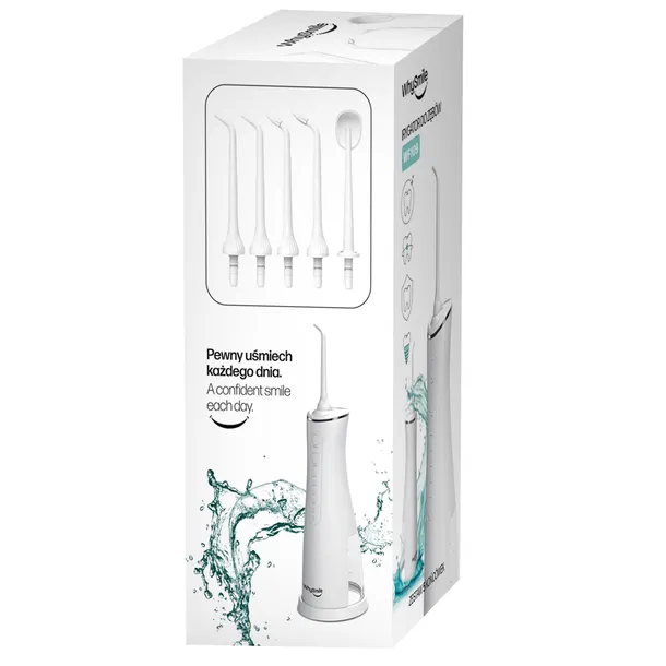 ✅MOCNY Irygator do Zębów WhySmile Dentystyczny BEZPRZEWODOWY 5 tryby 5 Dysz Oryginalna cecha irygatora do zębów, która go wyróżnia spośród innych, to obecność innowacyjnej stacji dokującej. Dzięki niej urządzenie zawsze jest gotowe do użycia, zawsze na wyciągnięcie ręki i zawsze zadbane. Niezwykła wygoda i łatwość użytkowania! INNOWACYJNY BEZPRZEWODOWY IRYGATOR DO ZĘBÓW DENTYSTYCZNY Dbanie o higienę jamy ustnej jeszcze nigdy nie było takie proste i skuteczne. Wnieś na zupełnie nowy poziom swoją pielęgnację zębów i dziąseł, dzięki zaawansowanej technologii pulsacyjnej, czyszczącej nawet trudno dostępne przestrzenie międzyzębowe. ZALETY PRODUKTU: 5 TRYBÓW PRACY - dobierz działanie idealnie do swoich potrzeb. 5 KOŃCÓWEK W ZESTAWIE - różnorodny zestaw do wielu zastosowań. INTELIGENTNY TIMER - Automatycznie wyłącza urządzenie po 2 minutach użytkowania. WODOODPORNOŚĆ KLASY IPX7 - dzięki specjalnej zawleczce na port ładowania możesz nawet całkowicie zanurzyć irygator w wodzie, bez obaw o jego uszkodzenie. ERGONOMICZNY DESIGN z dyszą obrotową 360°- zaprojektowany z myślą o wygodzie użytkowania idącej w parze z funkcjonalnością. POJEMNY POJEMNIK NA WODĘ - 250 ml 5 WYMIENNYCH KOŃCÓWEK 1 szt. SKROBAKA DO JĘZYKA: usuwa bakterie z języka, zapewniając tym samym świeży oddech. 2 szt. DYSZ STANDARDOWYCH: do codziennego czyszczenia przestrzeni międzyzębowych i linii dziąseł, skutecznie usuwa resztki jedzenia oraz płytkę nazębną. 2 szt. DYSZY ORTODONTYCZNEJ: dedykowana dla osób z aparatem ortodontycznym, zapewnia precyzyjne i dogłębne czyszczenie trudno dostępnych miejsc. AŻ 5 RÓŻNYCH TRYBÓW CHILD: Tryb dla dzieci - niskie ciśnienie wody, dedykowany dla zębów wrażliwych. SOFT: Tryb Łagodny - odpowiedni dla wrażliwych dziąseł oraz dla osób z aparatami ortodontycznymi. NORMAL: Tryb Normalny - umiarkowane ciśnienie wody, odpowiedni dla większości użytkowników do regularnego stosowania. STRONG: Tryb Mocny - strumień ciągły, do głębokiego czyszczenia przestrzeni międzyzębowych i niwelowania przykrego zapachu z ust. PULSE: Tryb Pulsacyjny - intensywny, pulsacyjny strumień wody masuje dziąsła i oczyszcza dziąsła, zapobiegając ich krwawieniu. Dodatkowo skutecznie usuwa osad z płytki nazębnej. DLA WYMAGAJĄCYCH Irygator dzięki swojemu wszechstronnemu zastosowaniu i różnym trybom pracy, z pewnością sprawdzi się osobom o szczególnych potrzebach, takich jak: wrażliwe dziąsła implanty aparaty ortodontyczne ZESTAW ZAWIERA: Irygator bezprzewodowy 5 szt. wymiennych końcówek Stacja ładująca Instrukcja obsługi