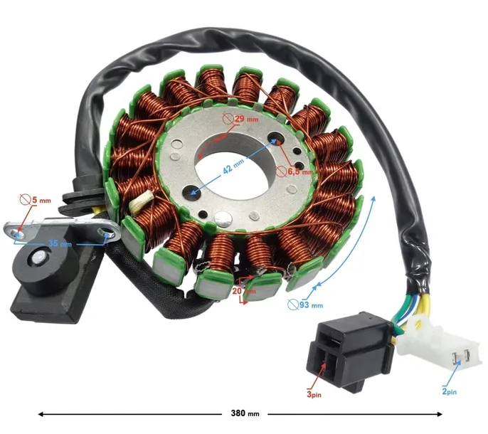 - rozstaw otworów montażowych podstawy statora: 42 mm