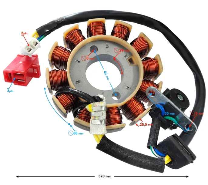 Iskrownik Falcon 50 (E5) to niezbędny element dla każdego skutera, który pragnie działać z największą wydajnością. Produkcja Moretti Parts charakteryzuje się najwyższą jakością, skrupulatnym wykonaniem i niezawodnością, która została doceniona przez coraz szersze grono zadowolonych użytkowników. Każdy iskrownik przechodzi rygorystyczne testy jakości, aby zapewnić mu maksymalne bezpieczeństwo i trwałość, co pozwala na długofalowe użytkowanie bez obaw o sprawność techniczną.Cechą wyróżniającą iskrownik do skutera Falcon 50 E5 jest suma jego komponentów technicznych. Posiada on aż 12 cewek oraz 3 + 3 przewody, co zapewnia efektywne wytwarzanie iskry niezbędnej do optymalnej pracy silnika. Zoptymalizowane wymiary, takie jak zewnętrzna średnica 88 mm oraz wewnętrzna średnica 29 mm, gwarantują doskonałe dopasowanie do wskazanych modeli skuterów. Zestaw zawiera również wszystkie niezbędne elementy montażowe, co czyni jego instalację intuicyjną i problem-free dla każdego właściciela skutera. Wybór tego iskrownika oznacza inwestycję w sprawdzoną jakość i niezawodność, która zapewni satysfakcję z użytkowania przez lata.