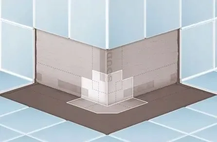 Elastyczna membrana TPE trwale zespolona z włókniną polipropylenową do uszczelniania zewnętrznych narożników - połączeń ściany- podłoga w pomieszczeniach wilgotnych.