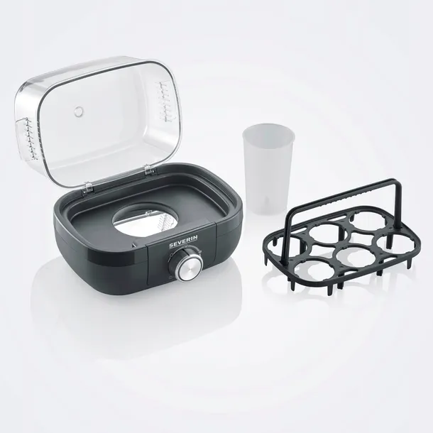 - regulowany stopień twardości jajek z elektroniczną kontrolą czasu i sygnałem dźwiękowym sygnalizującym koniec gotowania,