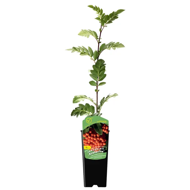 Jarząb Krasavica to rosyjska odmiana drzewa, o dekoracyjnych białych, miododajnych kwiatach, kwitnących w maju, owoce jadalne, soczyste, kuliste, o pomarańczowej barwie, dojrzewają od września do wczesnej zimy, odmiana bardzo plenna. Jarząb Krasavica rośnie w formie niewysokiego drzewa, osiąga zwykle 3-5m wysokości.