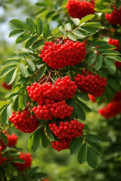 Wysokość/szerokość: 8–12 m / 4–6 mKorona: owalna, regularnaLiście: pierzaste, jesienią żółte lub pomarańczoweKwitnienie: maj–czerwiec; kwiaty białe w baldachogronachOwoce: czerwone, bardzo dekoracyjneStanowisko: słoneczne lub lekko zacienioneGleba: małe wymagania glebowe, dobrze rośnie w różnych warunkach