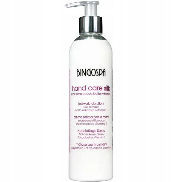Ten wysokiej jakości jedwab do pielęgnacji rąk i paznokci BINGOSPA o lekkiej konsystencji zapewnia nie tylko przyjemną aplikację, ale także głęboką regenerację. Skrupulatnie opracowana formuła z proteinami jedwabiu, śluzem ślimaka, masłem kakaowym i witaminą E stymuluje naturalne procesy odnowy skóry, przywracając dłoniom gładkość i witalność na co dzień.