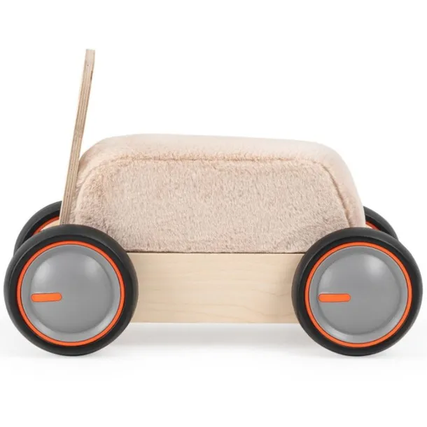 Jeździk wspiera pierwsze kroki i pierwsze przejażdżki dziecka w jednym produkcie. Dzięki regulacji prędkości w kołach maluch może bezpiecznie stawiać kroki, a później – samodzielnie jeździć, ćwicząc równowagę i koordynację. Miękkie siedzisko zapewnia wygodę podczas jazdy, a po jego zdjęciu wewnętrzna komora zamienia się w schowek na skarby i zabawki. Naturalna sklejka brzozowa, gładkie wykończenie i brak ostrych krawędzi sprawiają, że produkt jest przyjazny i bezpieczny na każdym etapie odkrywania świata.