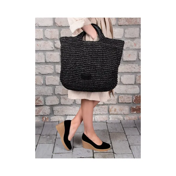 Duża, mieszcząca bez problemu format A4 torba typu shopper marki Big star wykonana z papierowej plecionki w kolorze czarnym to dość ciekawa propozycja. Dedykowana dla każdej kobiety, która lubi się wyróżniać i nie boi się bawić modą. Bez wątpienia pomieści wszystko to, co najpotrzebniejsze. Wnętrze jest obszyte czarną tkaniną. W środku znajdziemy jedną otwartą kieszeń np na telefon/smartfon. Na przodzie torby niewielkie skórzane logo producenta. Wymiary torby to: wysokość: 40 cm, szerokość: 45 cm, głębokość: 9 cm. Długość rączki to ok. 20 cm, a jej wysokość wynosi 10 cm. Zabłyśnij kompletnym strojem w marce Big Star, jednej z najczęściej wybieranych i najbardziej kultowych marek.