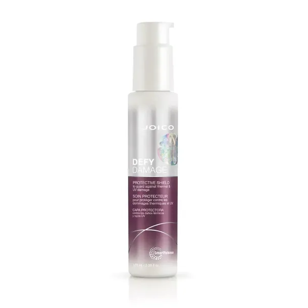 Ultralekki krem ochronny JOICO Defy Damage zapewnia długotrwałą ochronę włosów przed stylizacją na gorąco, zanieczyszczeniami środowiska i promieniowaniem UV. Nadaje pasmom jedwabistą miękkość i gładkość, zapobiega puszeniu się włosów, chroni kolor i przedłuża jego trwałość.