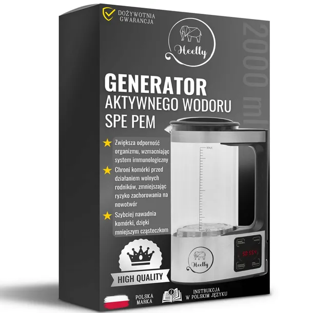 GENERATOR WODY WODOROWEJ AKTYWNEGO WODORU SPE PEM JONIZATOR 2L HEELLY