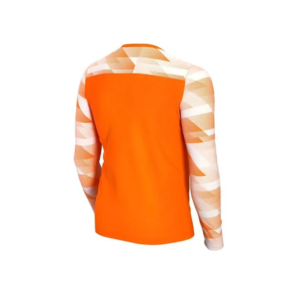 Wspieraj swoje dziecko w zachowaniu czystego konta i wybierz dla niego juniorską bluzę bramkarską Nike Dry Park. Szybkoschnąca, lekka tkanina zapewnia komfortową suchość w trakcie intensywnej aktywności. Zaawansowana technologia Dri-FIT. Standardowy krój z długimi rękawami. Siateczkowy panel na plecach, Okrągły dekolt. Pomarańczowa bluza bramkarska z geometryczną grafiką na rękawach. Sięgając po bluzę z recyklingowego poliestru, ograniczasz negatywny wpływ na środowisko.