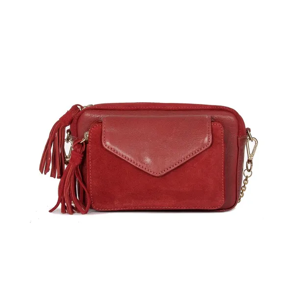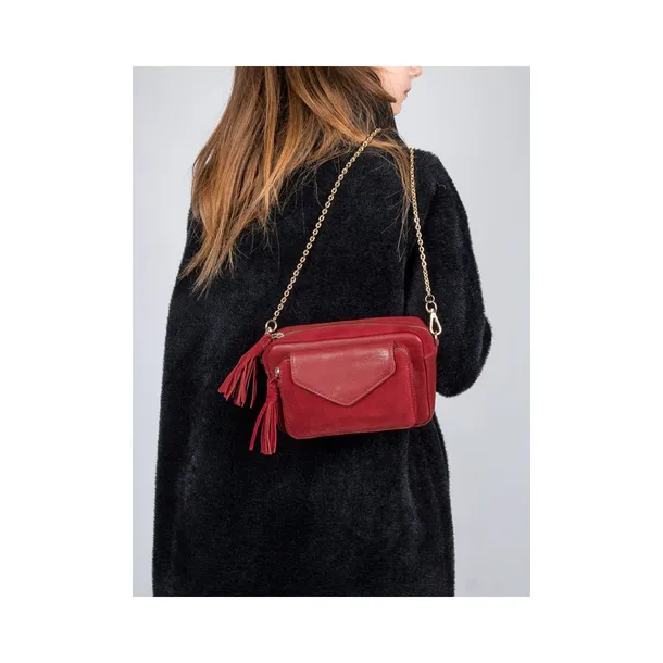Torebka marki Venezia wykonana z bardzo dobrej gatunkowo skóry naturalnej zamszowej i licowej w kolorze bordowym. Wnętrze torebki wykonane jest z tkaniny. Torba składa się z 1 komory. W środku znajdują się łącznie 2 kieszonki - 1 otwarta i 1 zapinana na zamek. Z przodu zewnętrzna kieszonka zapinana na zamek oraz magnetyczną napę. Metalowe okucia są w kolorze złotym. Torebka zapinana na ozdobną zamek, posiada piękny złoty łańcuszek, który można odpiąć. Wymiary: wysokość 14 cm, szerokość 22 cm, głębokość 8 cm. Mimo niewielkiego rozmiaru z pewnością pomieści wszystkie niezbędne kobiece drobiazgi. Nie zwlekaj, zamów już dziś i baw się kolorami dopasowując ten model do różnych stylizacji.