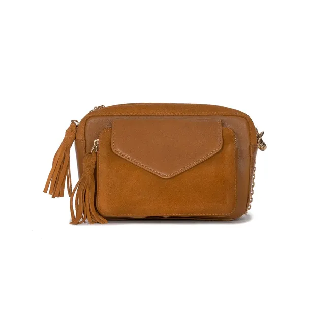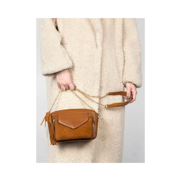 Torebka marki Venezia wykonana z bardzo dobrej gatunkowo skóry naturalnej zamszowej i licowej w kolorze brązowym. Wnętrze torebki wykonane jest z tkaniny. Torba składa się z 1 komory. W środku znajdują się łącznie 2 kieszonki - 1 otwarta i 1 zapinana na zamek. Z przodu zewnętrzna kieszonka zapinana na zamek oraz magnetyczną napę. Metalowe okucia są w kolorze złotym. Torebka zapinana na ozdobną zamek, posiada piękny złoty łańcuszek, który można odpiąć. Wymiary: wysokość 14 cm, szerokość 22 cm, głębokość 8 cm. Mimo niewielkiego rozmiaru z pewnością pomieści wszystkie niezbędne kobiece drobiazgi. Nie zwlekaj, zamów już dziś i baw się kolorami dopasowując ten model do różnych stylizacji.